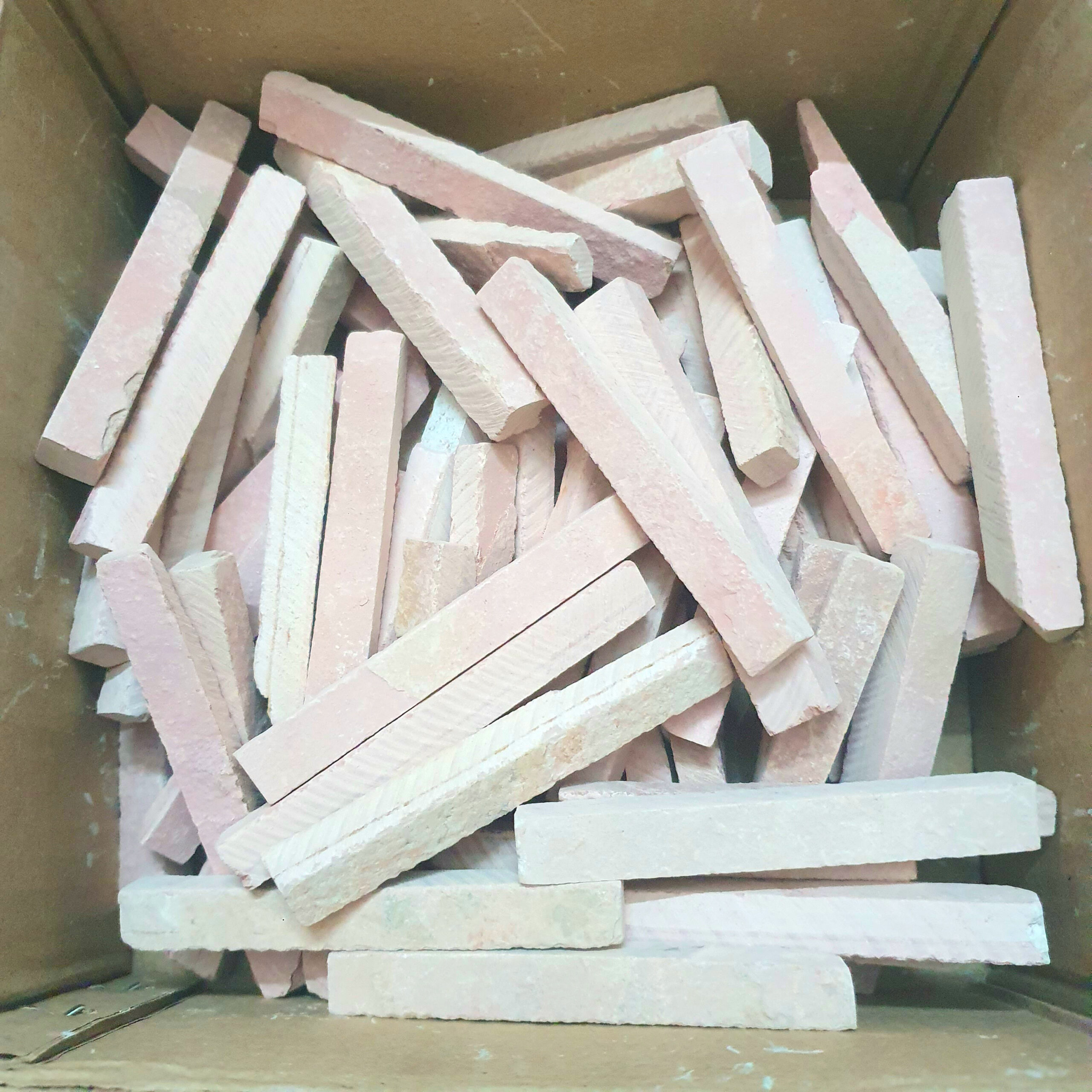 slate pencil comes in 3 different color White, red and black. Most demanding is white slate pencil. Red slate pencil is also loved by some people. We cut raw slate stone into multiple slate pencil and other slate shapes like slate bar, slate cube, slate block etc. Slate pencils are used to write on black slate board you can write erase and rewrite it using slate pencil. we deal in best quality of slate pencil. you can check the detailed video of process and making of slate pencil on our Youtube channel . Finest quality of slate pencil made using slate stone.